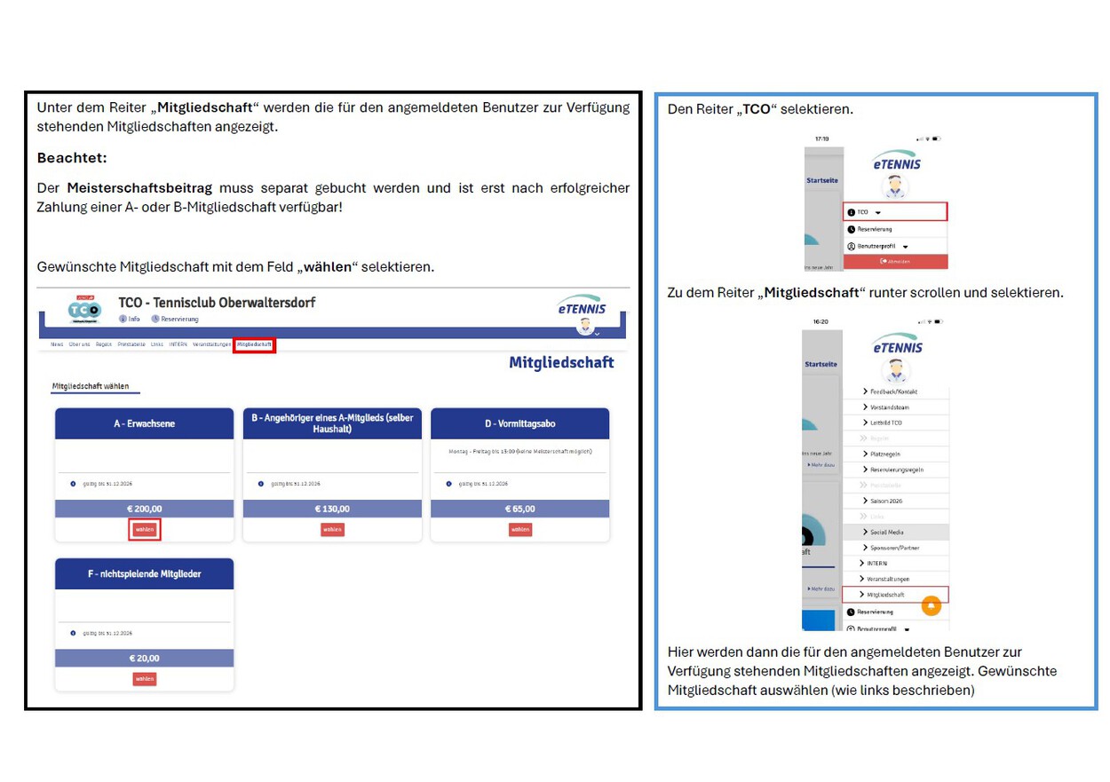 Buchung - Mitgliedschaft